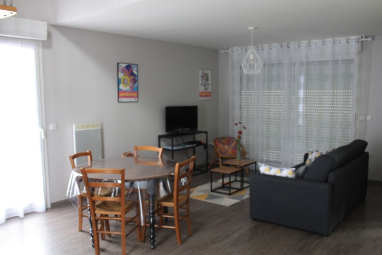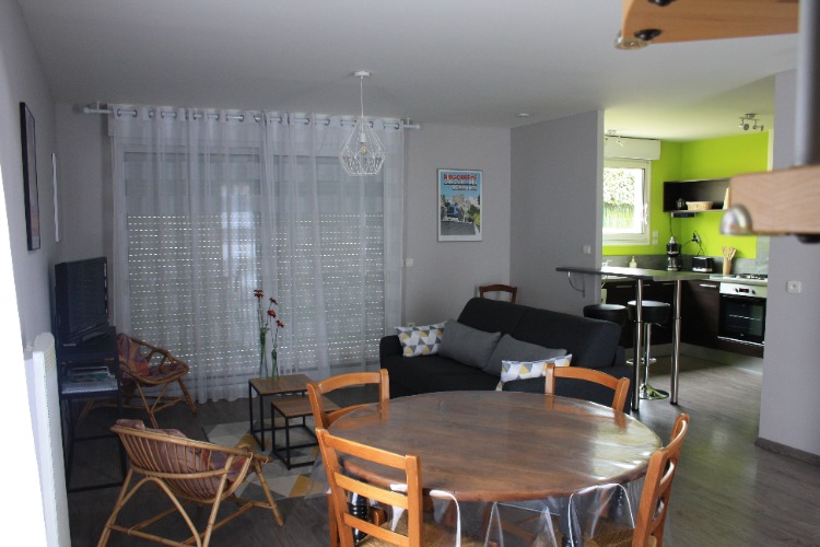 Voir les 13 photos-Ré de chaussée, entrée, WC, salon/séjour avec un canapé convertible (140x 190) cuisine équipée, garage clos, terrasse extérieure ( salon de jardin et barbecue ).
