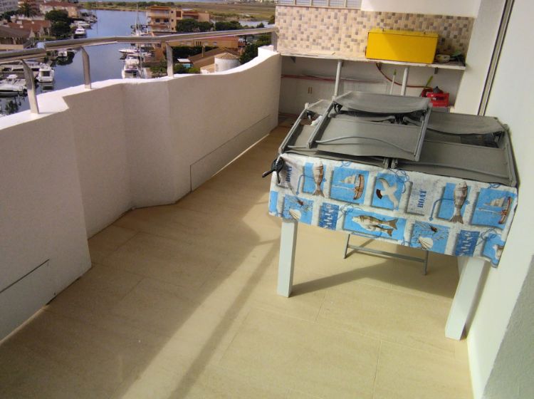 Grande terrasse avec vue dégagée sur la mer et les montagnes catalanes, et équipée d’une plancha.