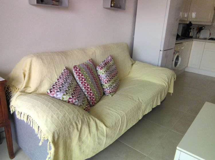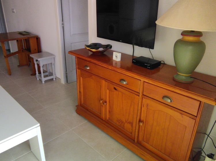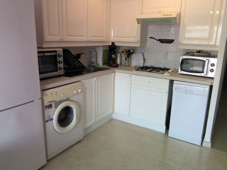 2 chambres avec un grand lit chacune, cuisine avec four, micro onde, frigo congélateur, plaque au gaz, lave vaisselle, salle de bain, sejour avec canapé et télé.