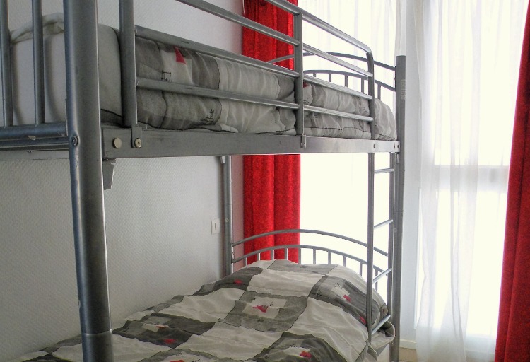 La troisième chambre a des lits superposés (2 couchages en 90). Elle donne sur la place centrale de la résidence.