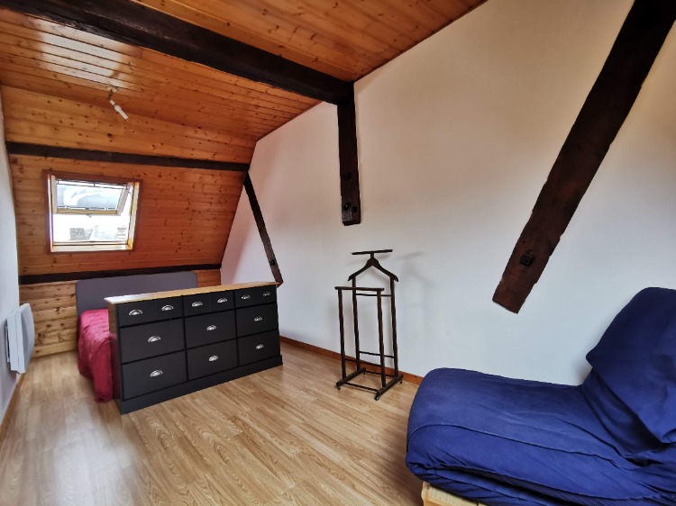 A l’étage une chambre avec 1 lit 140×200 et un futon 1 place. Equipement : wifi, TV grand écran, machine à laver, lave-vaisselle…