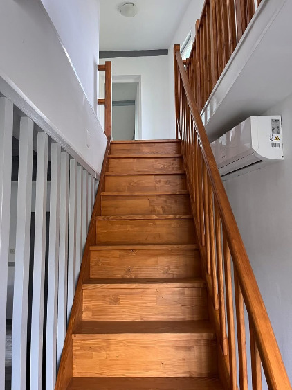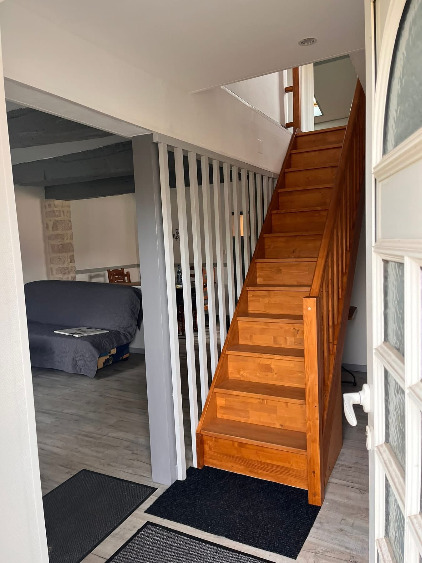 A l’étage 2 chambres, une salle de bains, WC et un coin bibliothèque