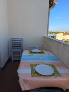 Le logement est situé proche de la plage du Môle (150 m) et des commerces, près de la Flânerie, au 4ième étage sans ascenseur.