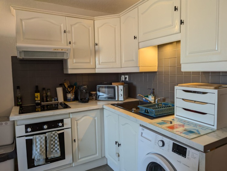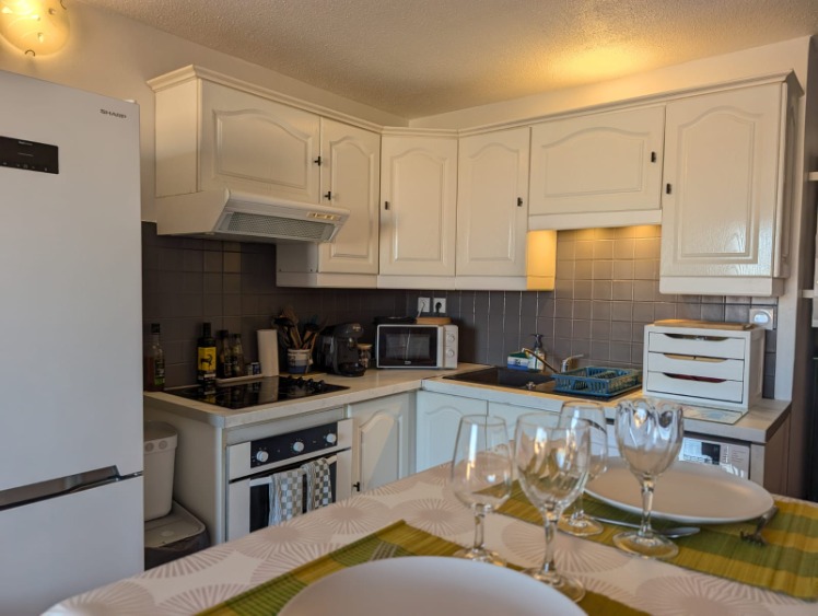 – Cuisine équipée (plaques et four, four micro-ondes, frigo/congélateur, machine à café, bouilloire, lave-linge)