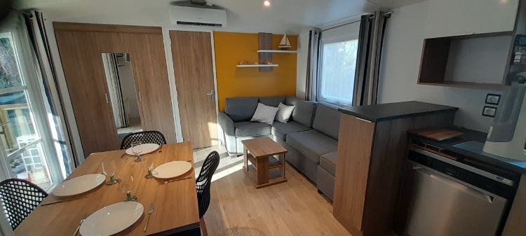 Mobilhome dans camping 4 étoiles, avec deux piscines, dont une chauffée, jeux enfants, restaurant, bar, salle de fitness, hamam, animation... Se situant sur Saint hilaire de riez, en Vendée, à 6 km de la plage.