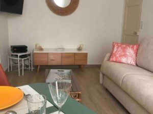 Un salon accueillant et cosy ou il fera bon se poser quand l’envie se fera sentir ( canapé-lit confort ) avec TV murale , Freebox , fibre et wifi.