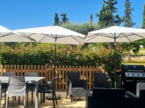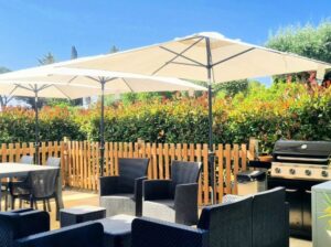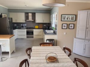 Ce logement de vacances de 145M2, 3 chambres spacieuses avec SdB et terrasse, dispose d’un espace ouvert de 50M2 regroupant salle à manger, cuisine américaine et salon donnant sur la terrasse équipé pour cuisiner, manger et se reposer.