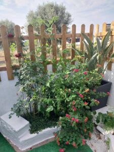 Découvrez le jardin/terrasse enclos avec table et chaises pour y déjeuner/diner en toute tranquilité avec petite cuisine extérieure et barbecue