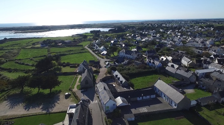 Au-dessus de la maison, la vue vers l'ouest, la Baie de Plouharnel et plus loin l'océan.