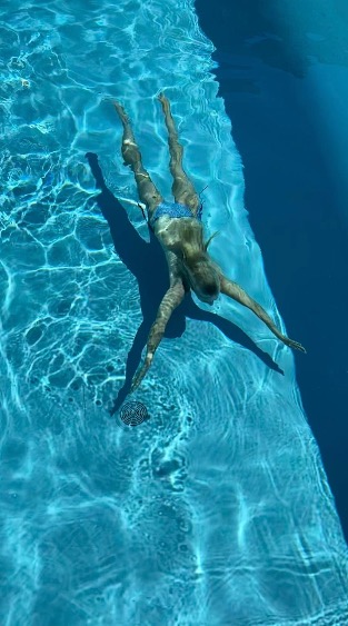Recouverte d’un abris coulissant complètement escamotable, Il est possible de se baigner avec l’abri fermé à la mi-saison