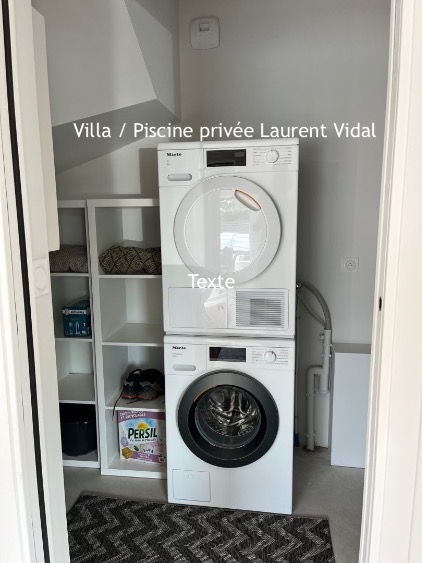 Buanderie avec machine, machine à laver et machine à sécher le linge.