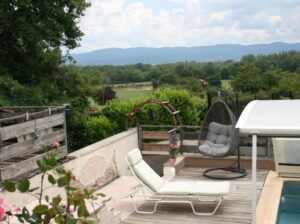 Voir les 24 photosChanteclair est un studio confortable et climatisé situé à l’étage d’une aile de la maison du propriétaire. Doté d’un balcon terrasse couvert, il possède une kitchenette bien équipée : plaque vitro-cerams, frigo, lave vaisselle et un vaste salon avec canapé de type “Rapido”. Sur le même niveau se trouve la salle de bains avec baignoire, lave linge, vasque et les toilettes séparées. En mezzanine se trouve une chambre avec un lit 2 places. Belle vue depuis le salon sur les montagnes du Bugey.
