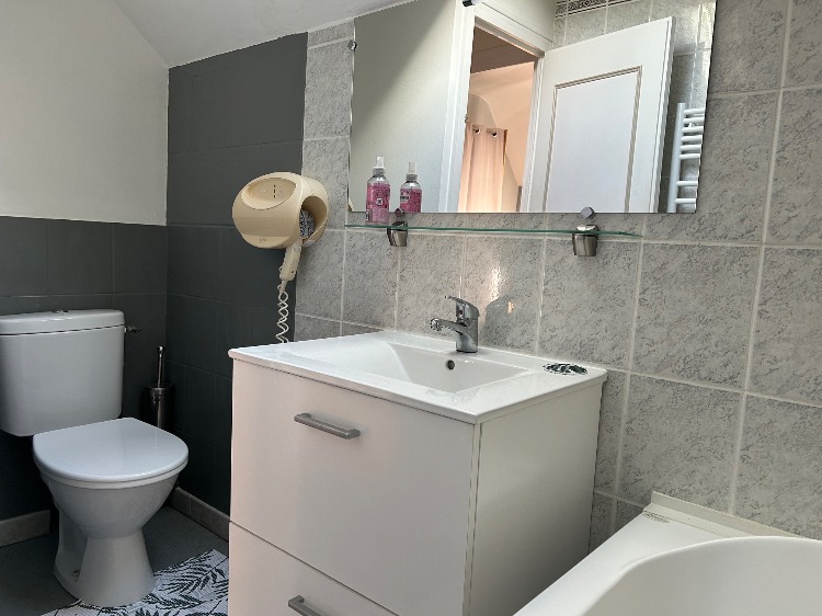 – Salle de bains avec baignoire, et vasque.