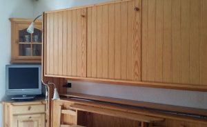 (1 canapé lit type clic-clac et 2 lits superposés rabattables avec