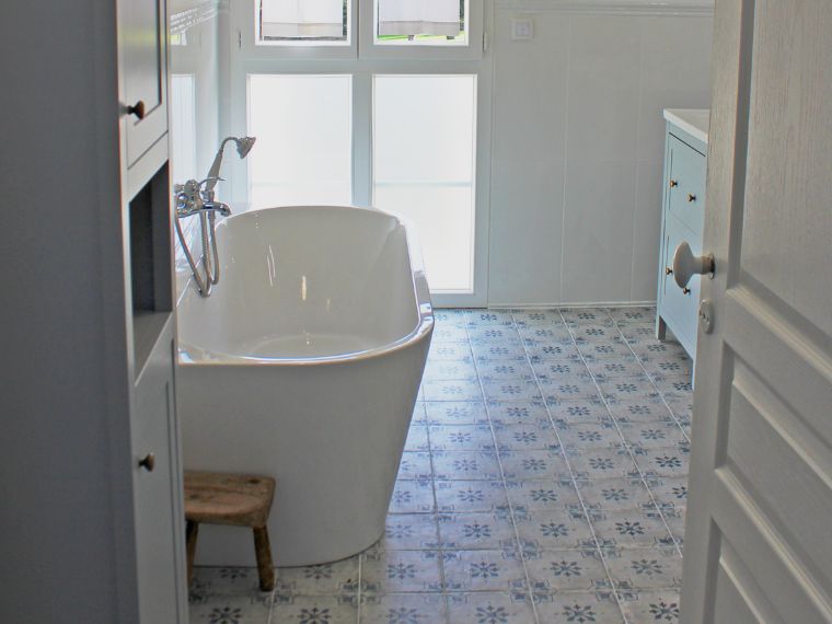 – grande salle de bain de charme avec baignoire et douche ouverte, 2 toilettes séparées