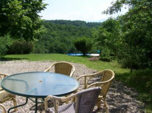 Chaque maison a sa propre terrasse (avec salon de jardin) bordée par des haies, donc votre intimité est garantie. La seule chose que vous partagez est la piscine et la vue magnifique des Pyrénées.