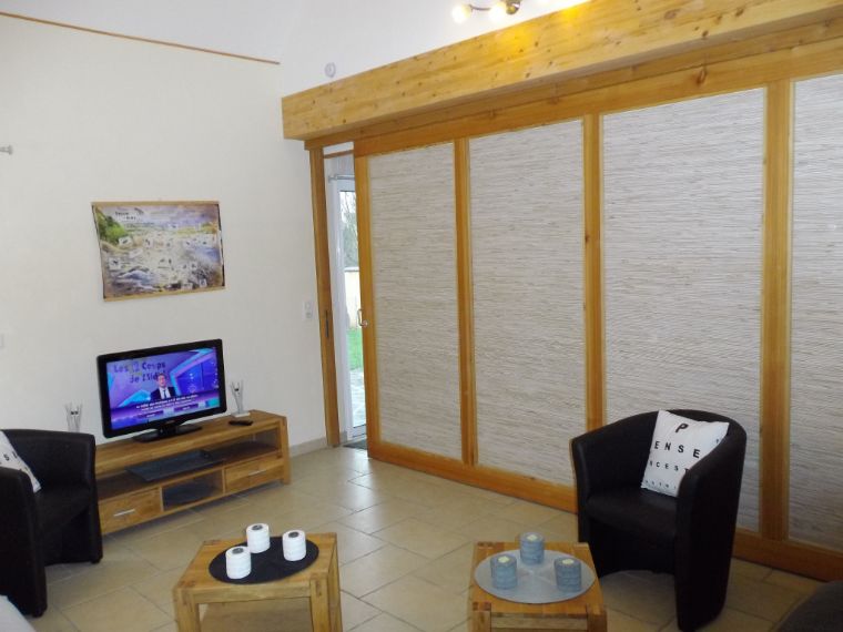 Le salon peut être transformé en chambre grâce à une cloison coulissante, pour avoir 2 places de couchage supplémentaires.