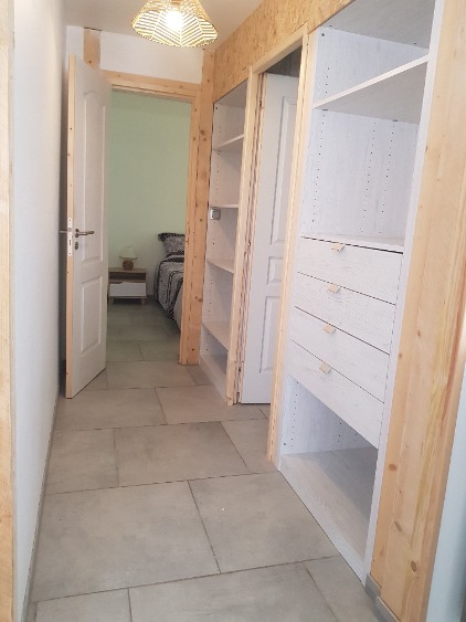 1 couloir vers 1 chambre double et salle de bain