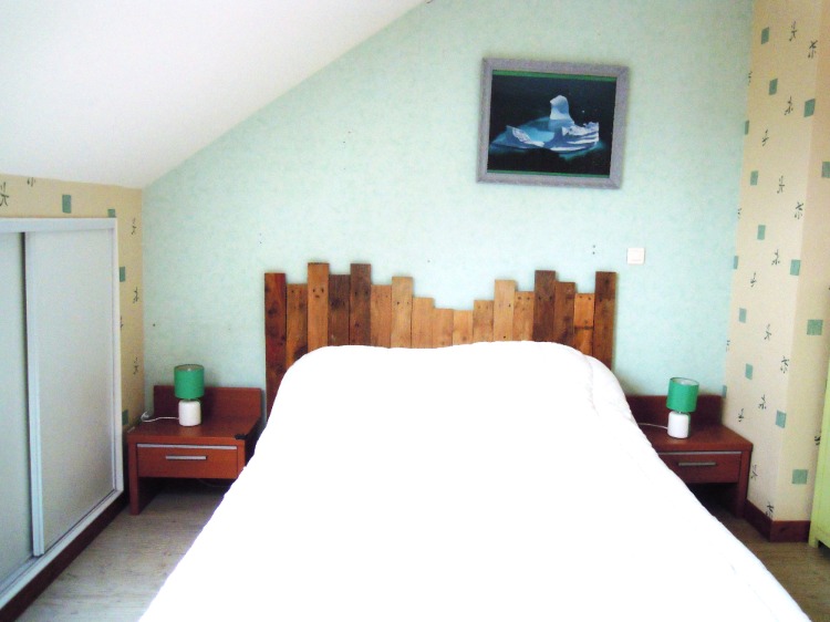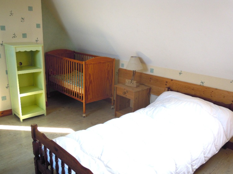 A l’étage, deux chambres avec chacune un lit double de 140 et un lit simple de 90, une salle de bain avec douche et WC intégré.