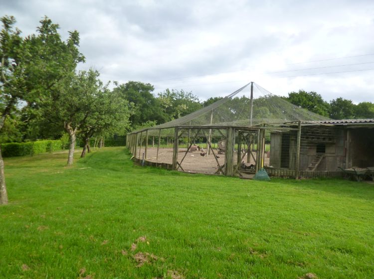 Accès indépendant du jardin ( 6 marches ) par une terrasse privative de 15 m2 ,orientée Est sans autre vis à vis que la volière ( apprécier la vie d’une basse-cour nombreuse et variée ) .