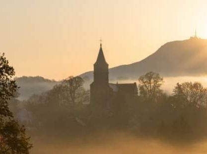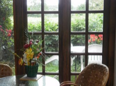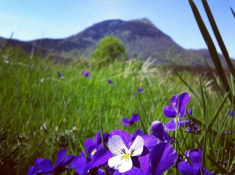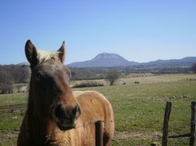 Par beau temps, une promenade dans le jardin suffit pour admirer la vue panoramique sur les volcans. Magique et spectaculaire la chaîne des volcans et le massif du Sancy sont les voisins immédiats de cette perspective.