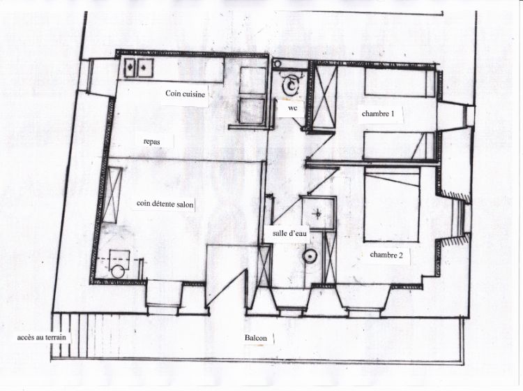 Voir les 24 photosLe gîte est composé d’une grande pièce avec coin salon et coin repas et cuisine fonctonnelle entiérement équipée, de deux chambres, une avec deux lits une place, l’autre avec un grand lit 2 places, une salle d’eau (douche) et un wc.