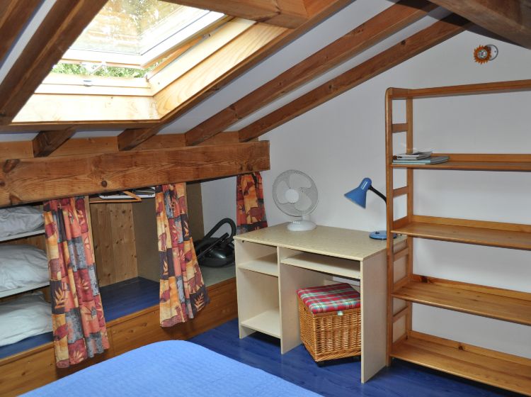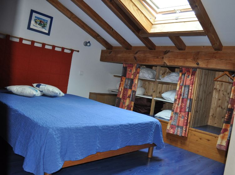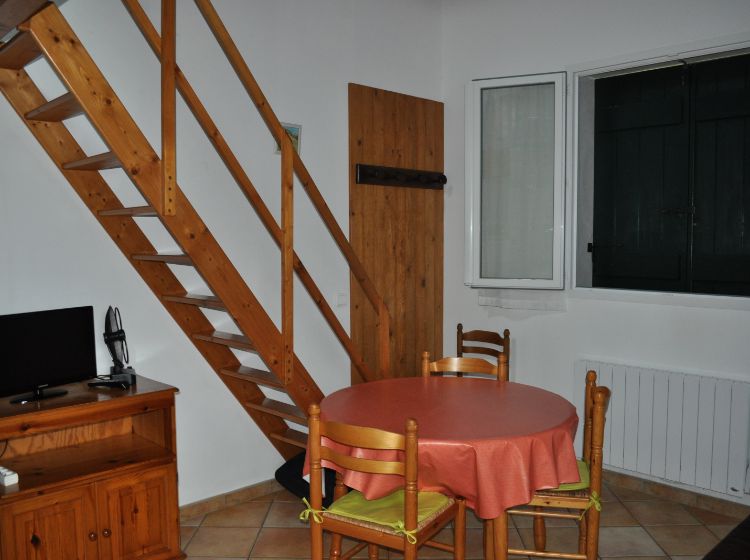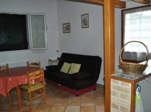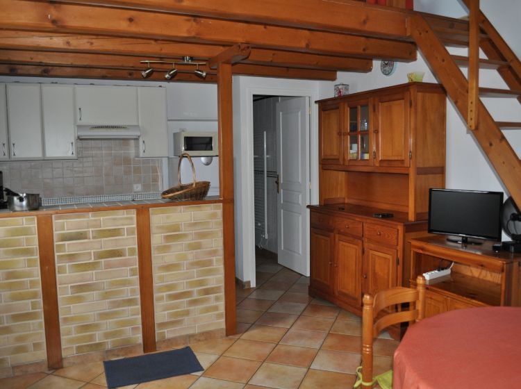 Le gîte est accolé à la maison du loueur, c’est un studio avec une mezzanine, idéal pour 2 ou 3 personnes ou 2 adultes et 2 jeunes enfants. Il y a en bas le séjour avec une cuisine équipée et une salle d’eau avec wc. La chambre est dans la mezzanine. Pour les couchages, un lit en 140×190 dans la mezzanine, et un clic-clac en 130×190 dans le séjour. A l’extérieur, il y a un salon de jardin avec un barbecue. Le parking se fait devant la maison. L’accès internet est inclus.