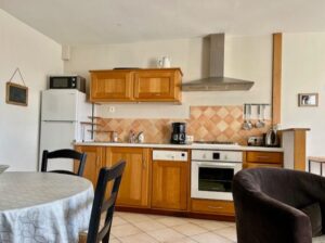 A l’étage, 2 chambres peuvent accueillir jusqu’à 4 personnes ( 1 lit double et 2 lits simples). Salle d’eau attenante.