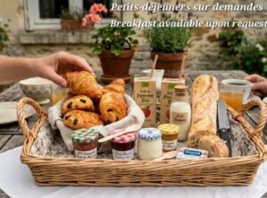 Sur demande,nous mettons également à votre disposition le matériel nécessaire pour accueillir votre bébé (lit en bois, baignoire, chaise haute, réhausseur, matelas à langer , pot,vaisselle adaptée)