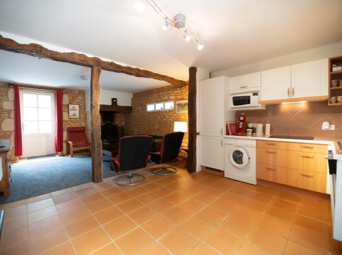 Petit bijou de 75m² avec un poêle à bois, ce gîte comprend un séjour avec cuisine ouverte, 2 chambres (1 lit king size et 2 lits simples), une salle d’eau (douche et lavabo), 1 wc séparé, 2 remises et 2 terrasses indépendantes orientées ouest et nord-est.