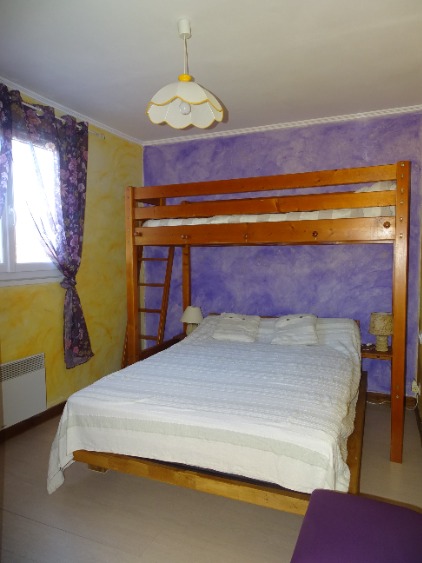 Elle se compose d’une pièce de vie avec une cuisine américaine, de deux chambres (une avec un lit de 140 et l’autre un lit de 140 et un lit de 90 en mezzanine), d’une salle d’eau avec wc.