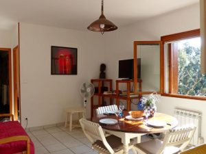Proposant un seul gîte de 2 pièces, bioclimatique – frais en été doux en hiver et sa façade végétalisée – vous y trouverez une chambre séparée avec lit double, une salle de bain et lave-linge, un séjour-cuisine avec cuisine équipée, frigo-congélateur de 200L, grand four électrique, four micro ondes, plaques de cuisson 60 cm, téléviseur écran plat 80 cm (avec prises USB et HDMI) et possibilité de services de streaming et chaînes tv internationales, lecteur DVD et quelques coffrets tous genres, chaine HIFI, canapé convertible.