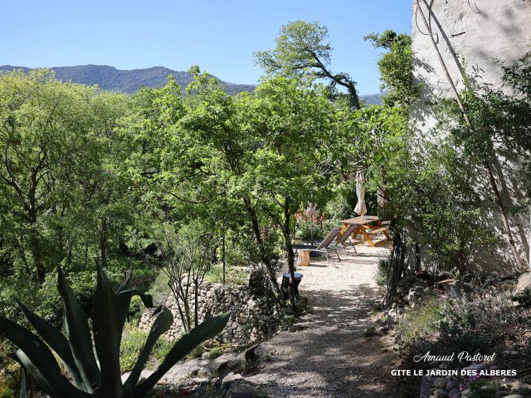 Avec accès et entrée indépendants, une exposition Sud-Est face au Massif des Albères et vue sur la Tour de Massane (qui jouxte la réserve naturelle de la Massane, classée à l’UNESCO), le gîte occupe tout le rez-de-chaussée d’une bâtisse en pierres et est ouvert sur une terrasse de 50 m2 en galets naturels (cf photo précédente), le parc et la montagne.