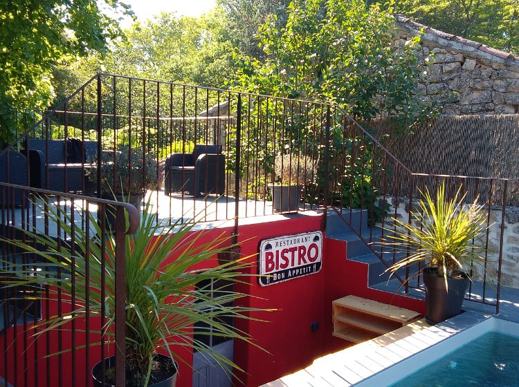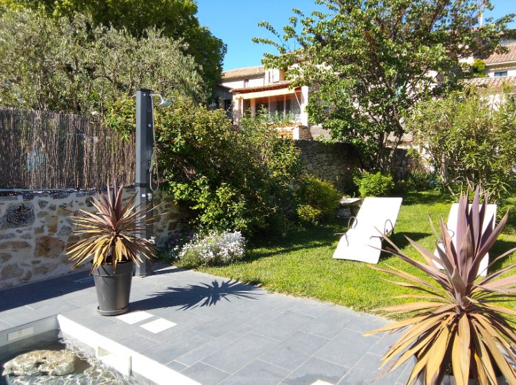 Le jardin clos et sécurisé vous acceuille pour des moments de détente avec sa piscine au sel munie d’une douche extérieure et sa terasse ombragée équipée d’un salon de jardin pour prolonger les soirées d’été.