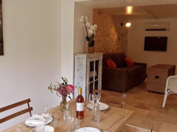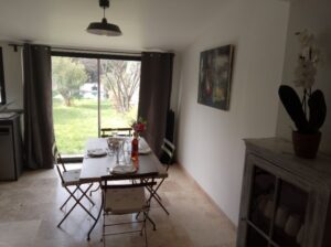 Situé au centre d’un village Vauclusien typique et vivant qui offre toutes les commodités, sa surface de 70 m2 se compose en rez de chaussée d’une cuisine équipée ouverte sur un salon avec son deuxiéme point de couchage et sur le jardin par une grand baie vitrée et de toilettes indépendants ainsi qu’une laverie.
