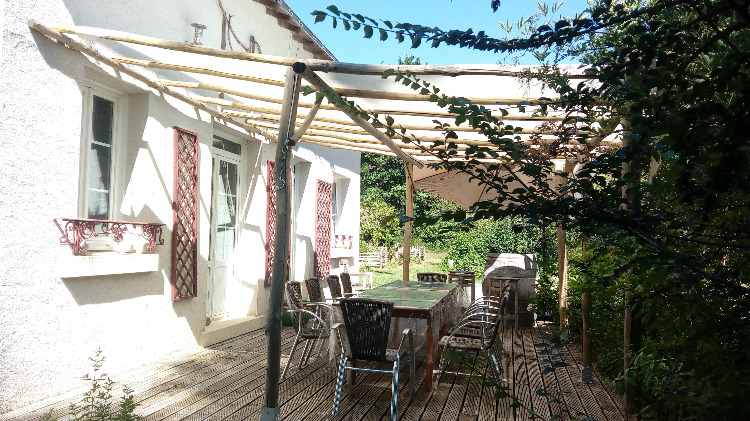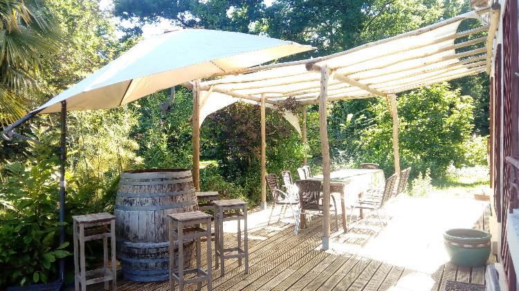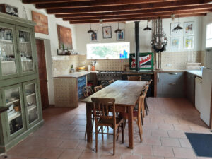 La maison, très lumineuse, donne sur une terrasse avec une grande table, autour de laquelle vous pourrez partager vos repas entre amis ou en famille tout en profitant de la tranquillité de l’environnement. Une plancha est mise à votre disposition.