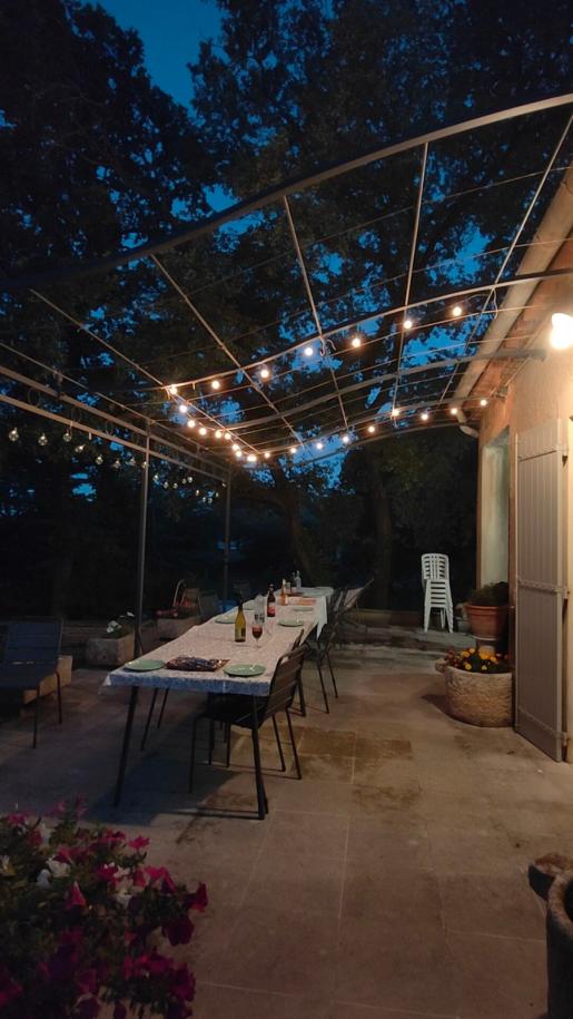 La terrasse a une vue sur le massif du Luberon.