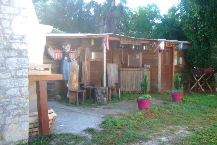 Vous pourrez profiter de l’espace détente commun aux trois gites. et arriverez par une ambiance western avec barbecue, totem et bar en bois.