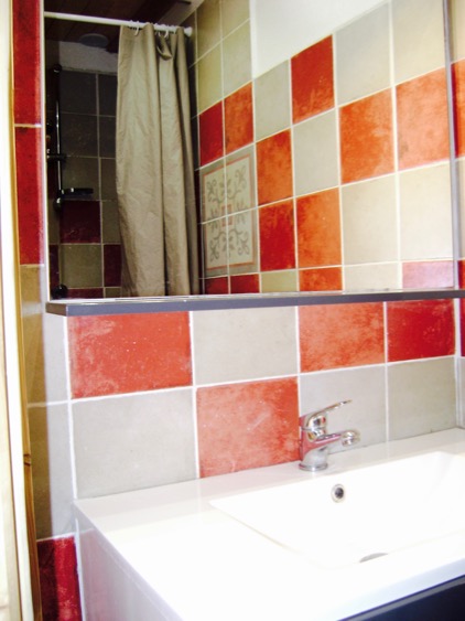 En Rez de chaussée se trouve un séjour/cuisine avec un magnifique carrelage , cuisine équipé ( Frigo / congélateur, cuisinière à gaz /four, micro-onde ), un clic clac 2 places ,