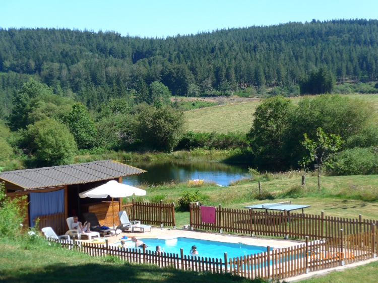 La piscine chauffée et l'étang avec son pédalo