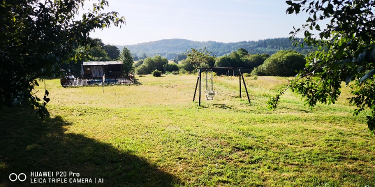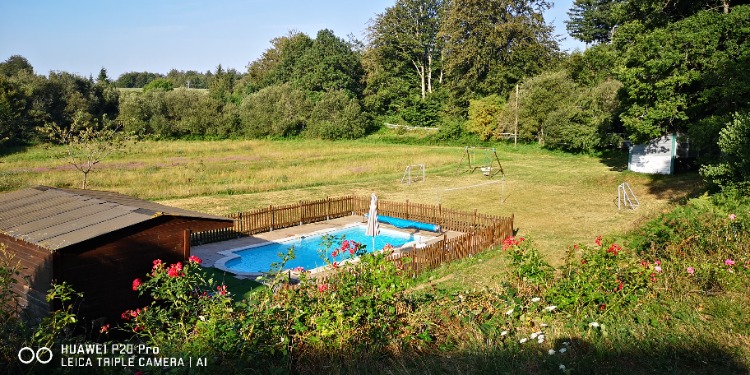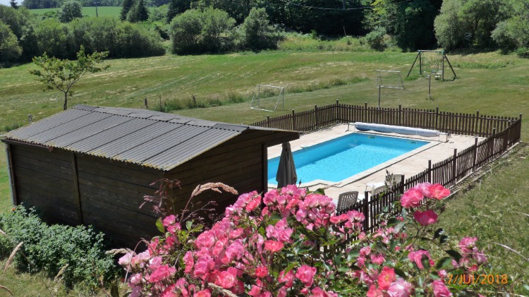 Autre vue de la piscine chauffée , cages de foot et balançoires