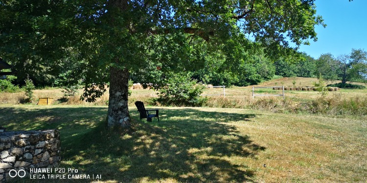 Sieste sous le chêne, chaise longue tournée vers le grand champ