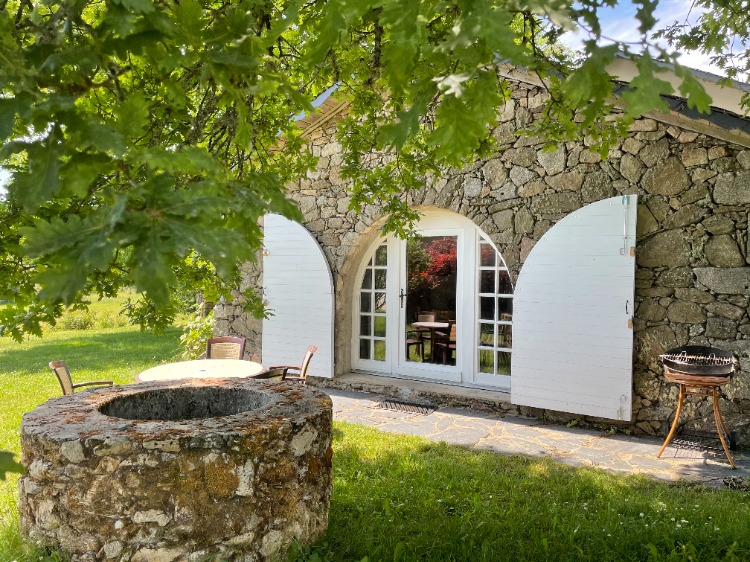 L'entrée lumineuse du gîte, sa terrasse avec le barbecue