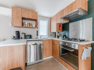 Cuisine entièrement équipée ( lave vaisselles – frigo avec congélateur – plaque 4 feux gaz – four – cafetière Senseo – bouilloire – grille pain – micro ondes – Airfryer – ustensiles de cuisine ect…).