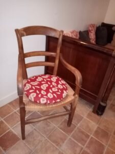 Il dispose d’une salle à manger/salon sur tomettes, avec une banquette, buffet, table et chaises anciennes, TV, donnant sur cour commune (possibilité d’y parquer les vélos) ; cuisine toute équipée : réfrigérateur-congélateur, lave-vaisselle, table induction, micro-ondes, etc…