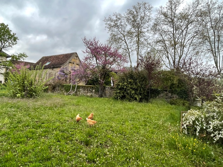 La propriété se trouve dans le village mais nichée dans un immense jardin clos avec vue dégagée sur la campagne environnante. Une petite route borde la propriété mais le trafic est modeste.