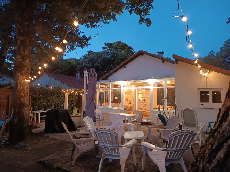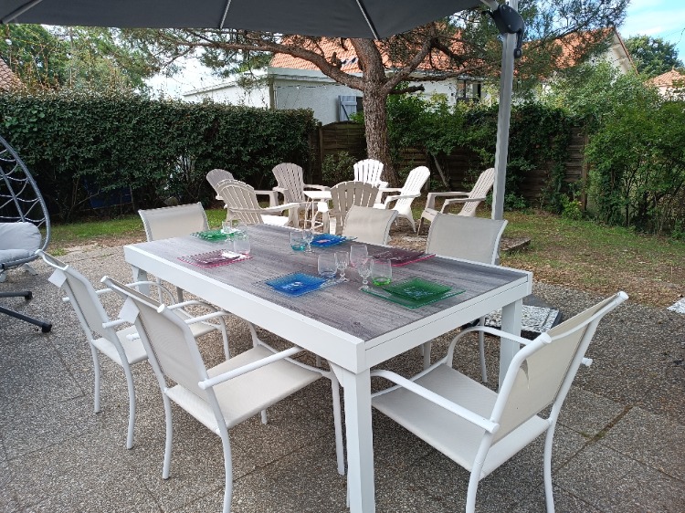 Dans un quartier calme dans les pins et très proche d'une plage surveillée de sable fin et des dunes. Un restaurant au bout de la rue