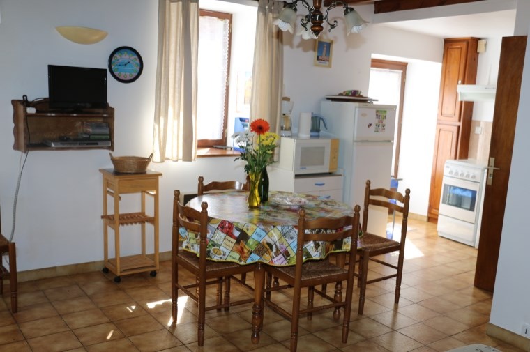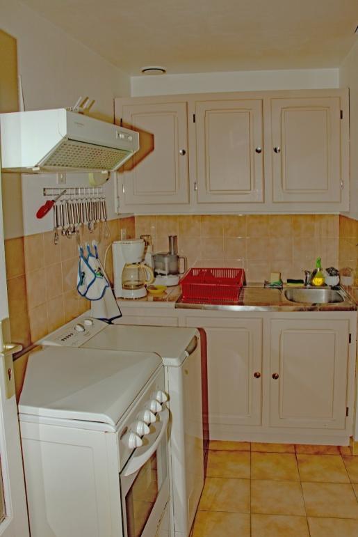 coin cuisine parfaitement aménagé pour 4 personnes (toute la vaisselle et petit éléctro-menager, lave-linge, gazinière 4 feux+four, micro-ondes, 2 cafetières, robot, autocuiseur) etc et rangements –