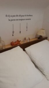 Etage : 2 chambres lumineuses – 1 avec lit double -miroir en pied dans la penderie et commode – 1 avec 2 lits simples et penderie