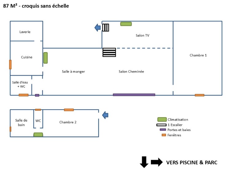 | Equipement bébé | Chauffage central | Douche | Baignoire | Cheminée ou poêle à bois | Ventilateur | Climatisation | Livres de bibliothèque | Jeux de société |